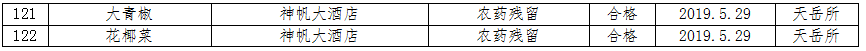 5月份共检测食品中农药残留、重金属铬、黄曲霉毒素B1、硼砂、食用油酸价、过氧化值含量122个批次,所检批次全部合格。