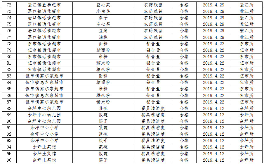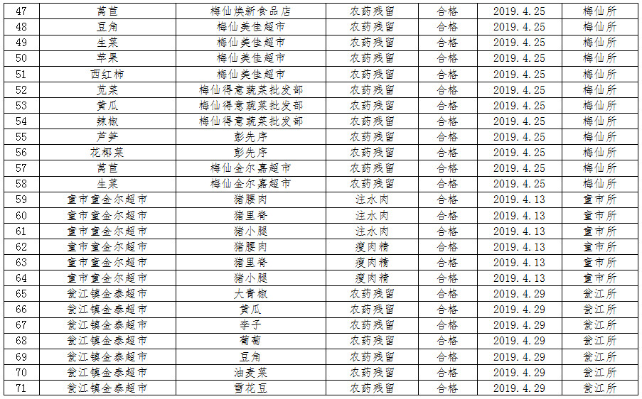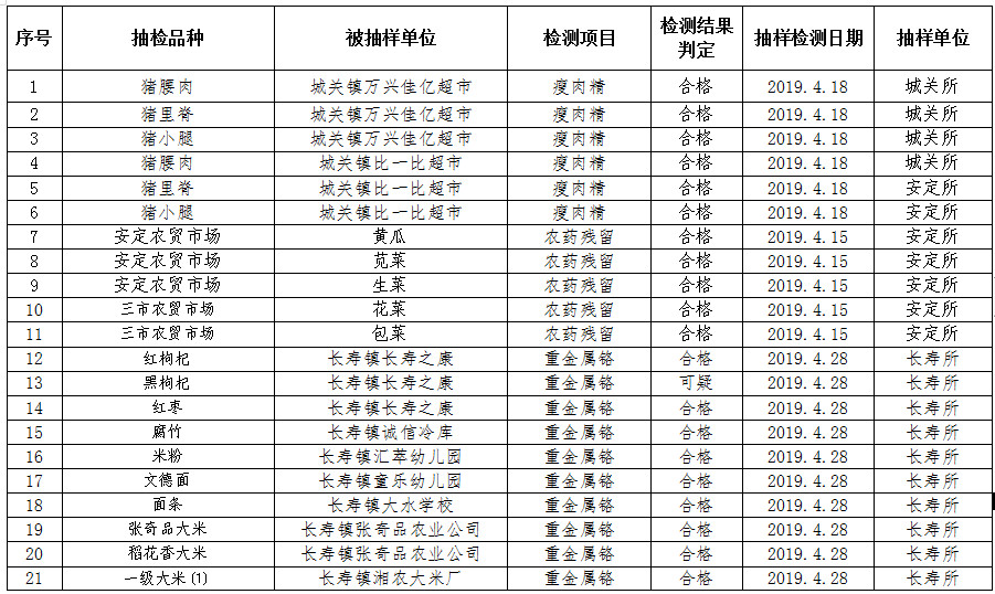 为切实加强食品安全工作的监管力度,保障人民群众舌尖上的食品安全,根据《平江县市场监督管理局2019年食品安全快速检测工作计划》,现将平江县市场监督管理局2019年4月份各基层所食品快速检测结果公示如下: