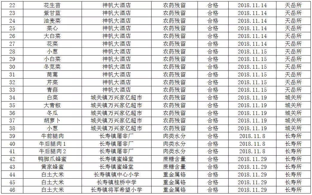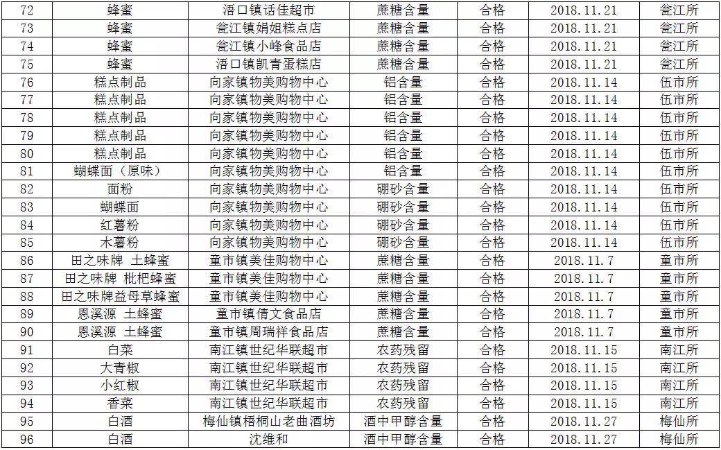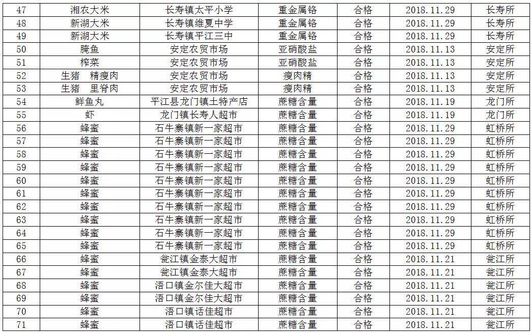 为切实加强食品安全工作的监管力度,保障人民群众舌尖上的食品安全,根据《平江县食品药品工商质量监督管理局2018年食品安全快速检测工作计划》,现将11月份各基层所食品快速检测结果公示如下: