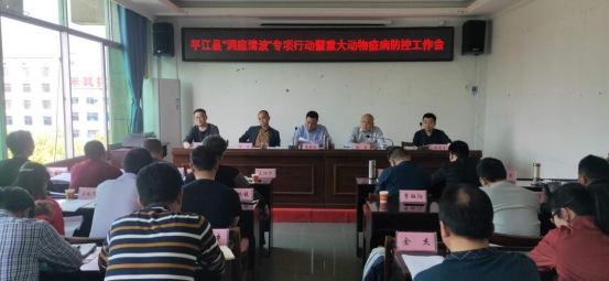 为深入贯彻习近平总书记“守护好一江碧水”的重要指示要求,加快推进汨罗江平江流城生态环境改善,坚决打赢污染防治攻坚战, 4月16日,县畜牧水产农机事务中心组织召开平江县“洞庭清波”专项行动暨重大动物疫病防控工作会。中心全体班子成员、二级机构正副职、相关股室负责人及各乡镇畜牧站负责人参加。