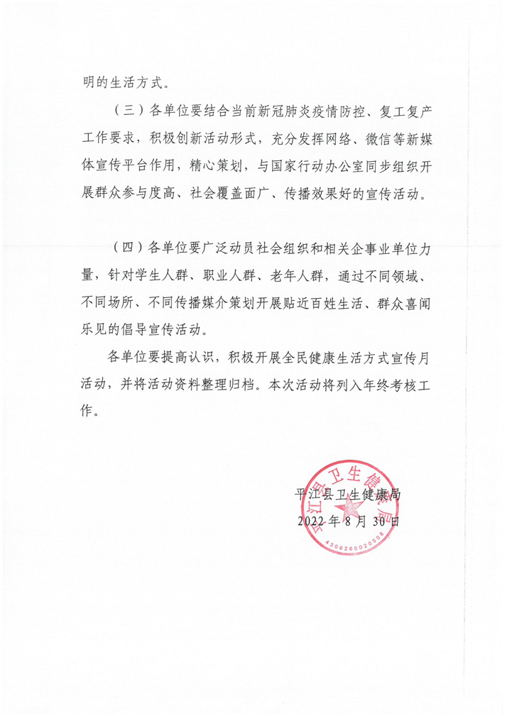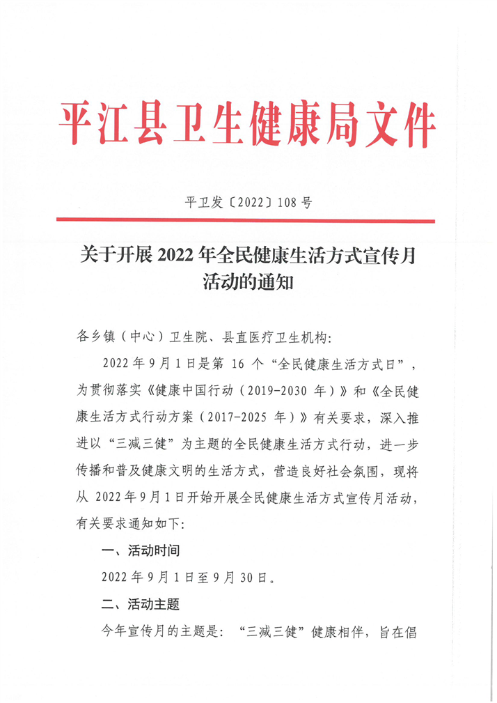 关于开展2022年全民健康生活方式宣传月活动的通知