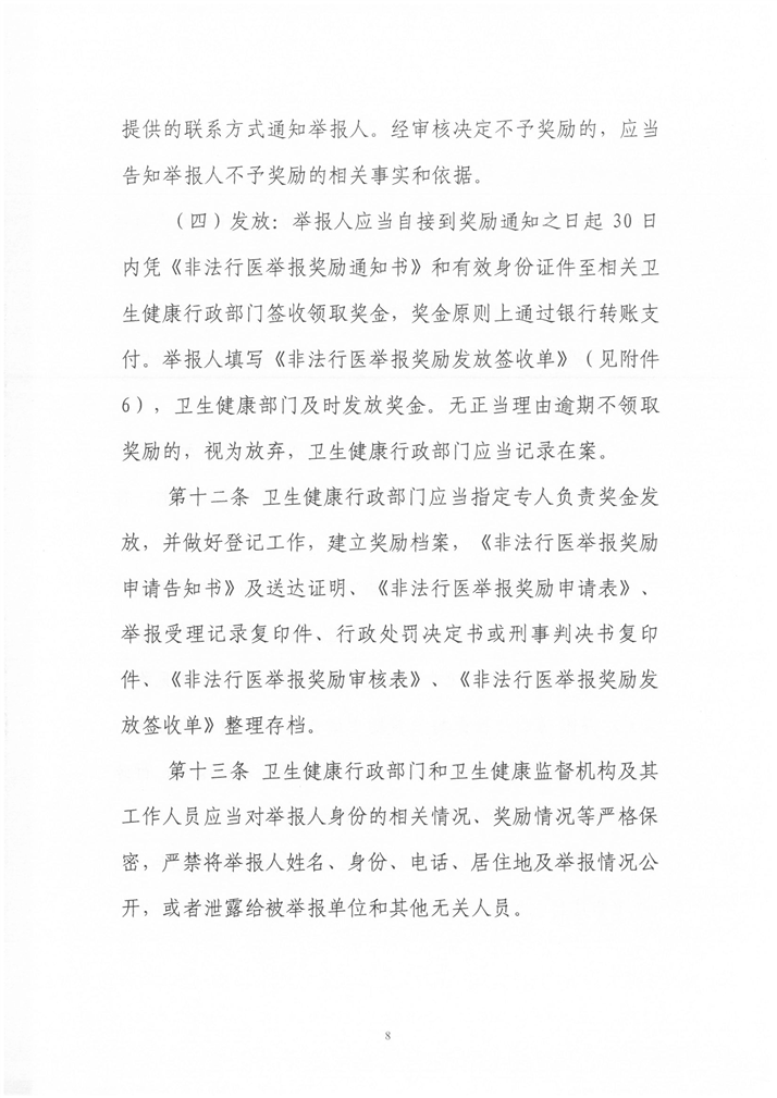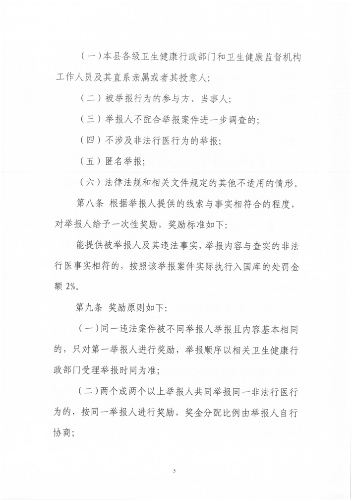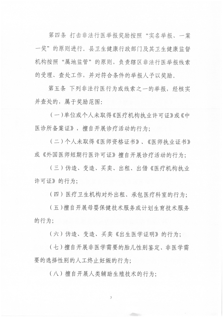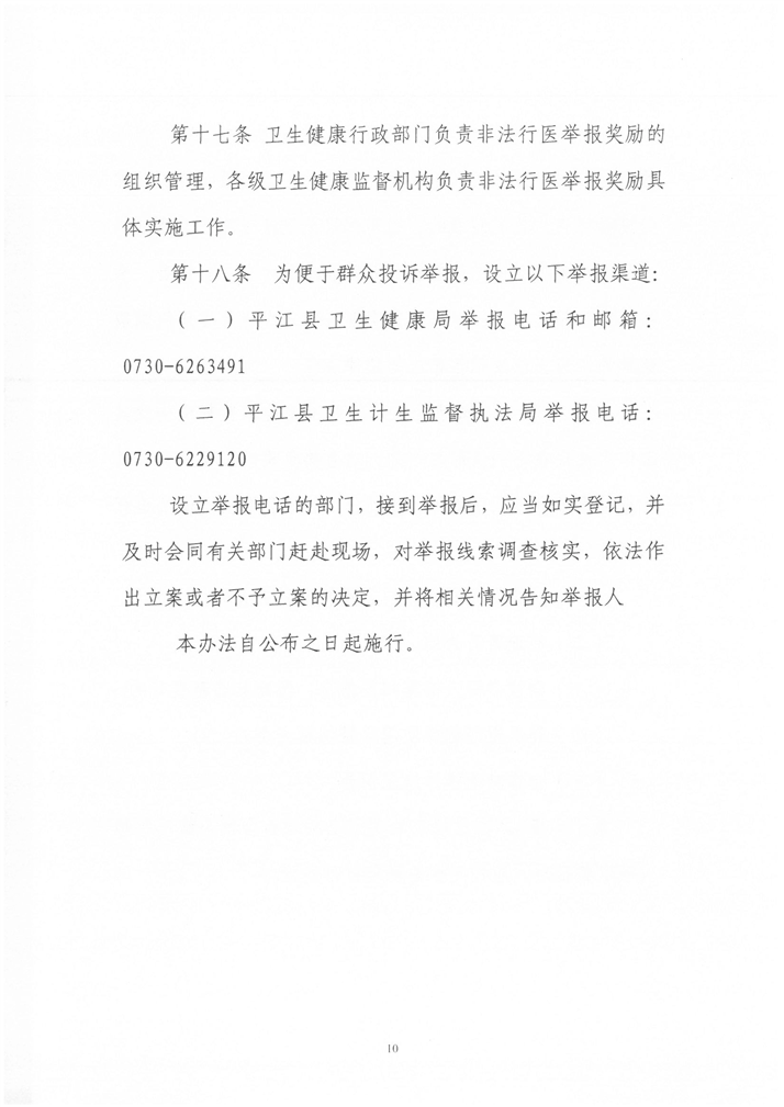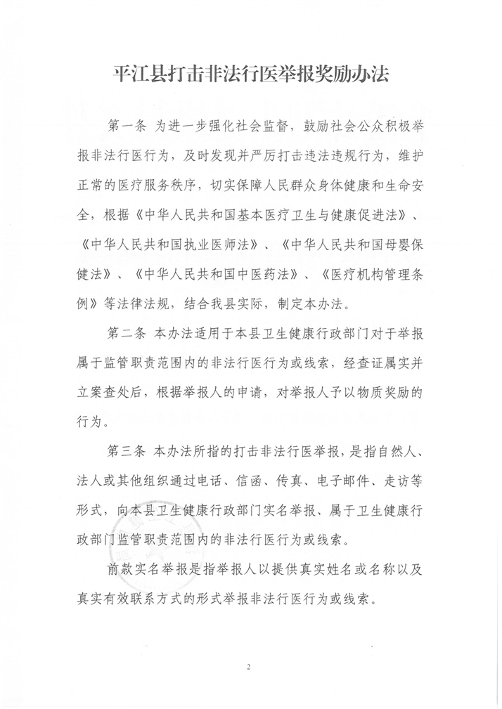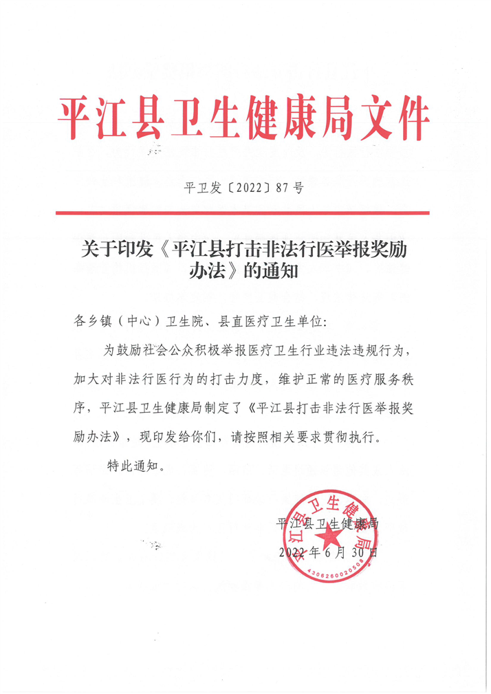 关于印发《平江县打击非法行医举报奖励办法》的通知