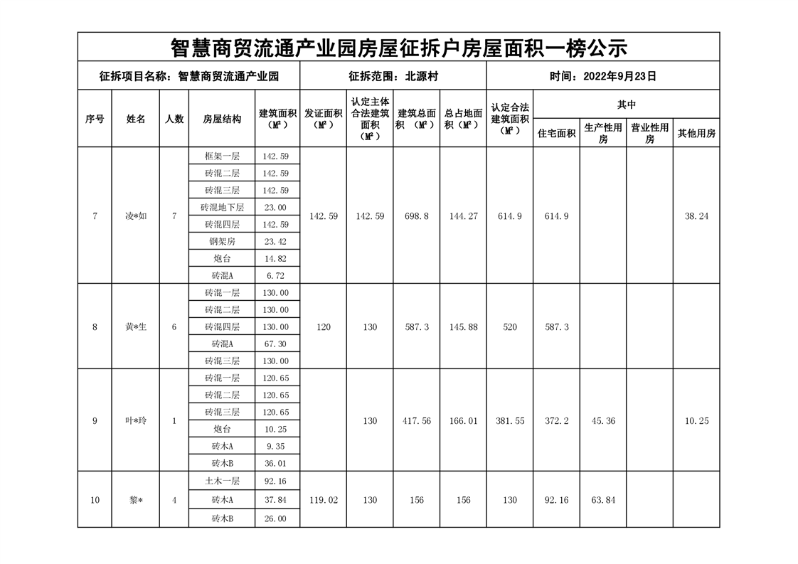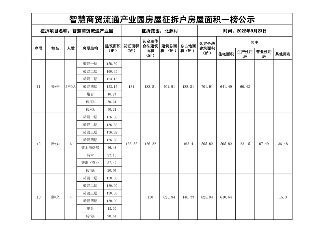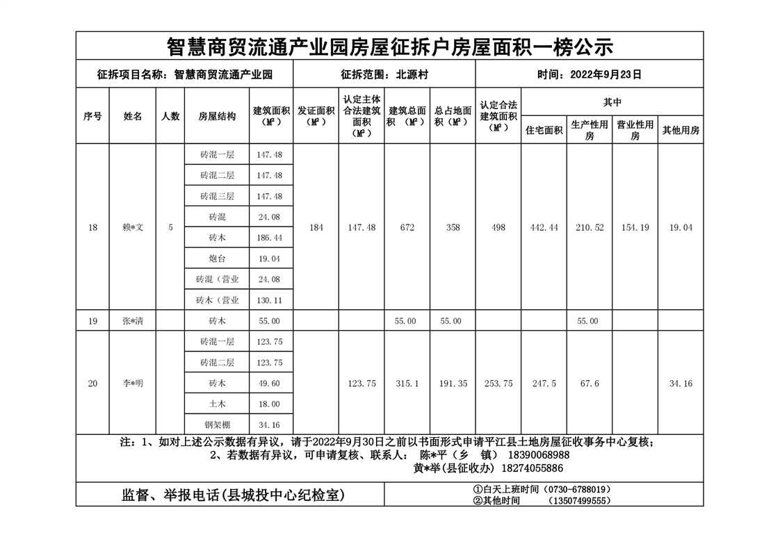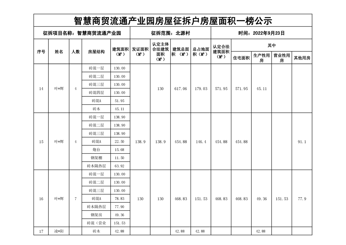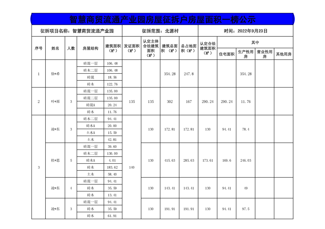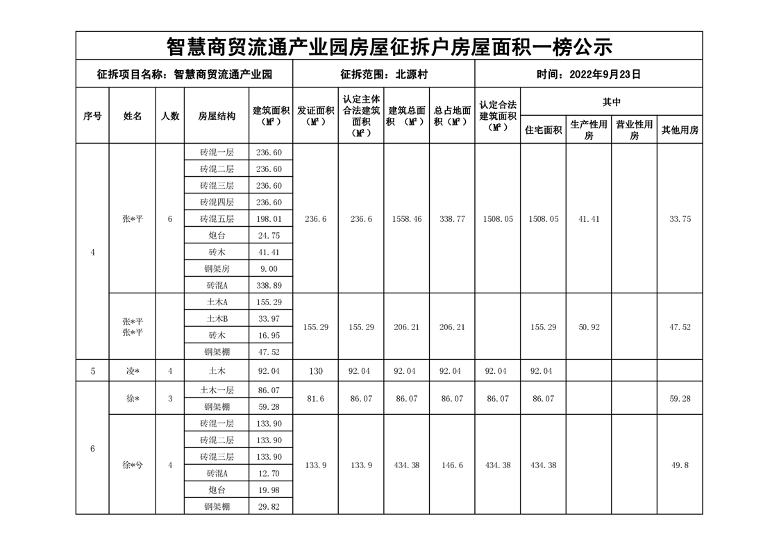 智慧商贸流通产业园房屋征拆户房屋面积一榜公示