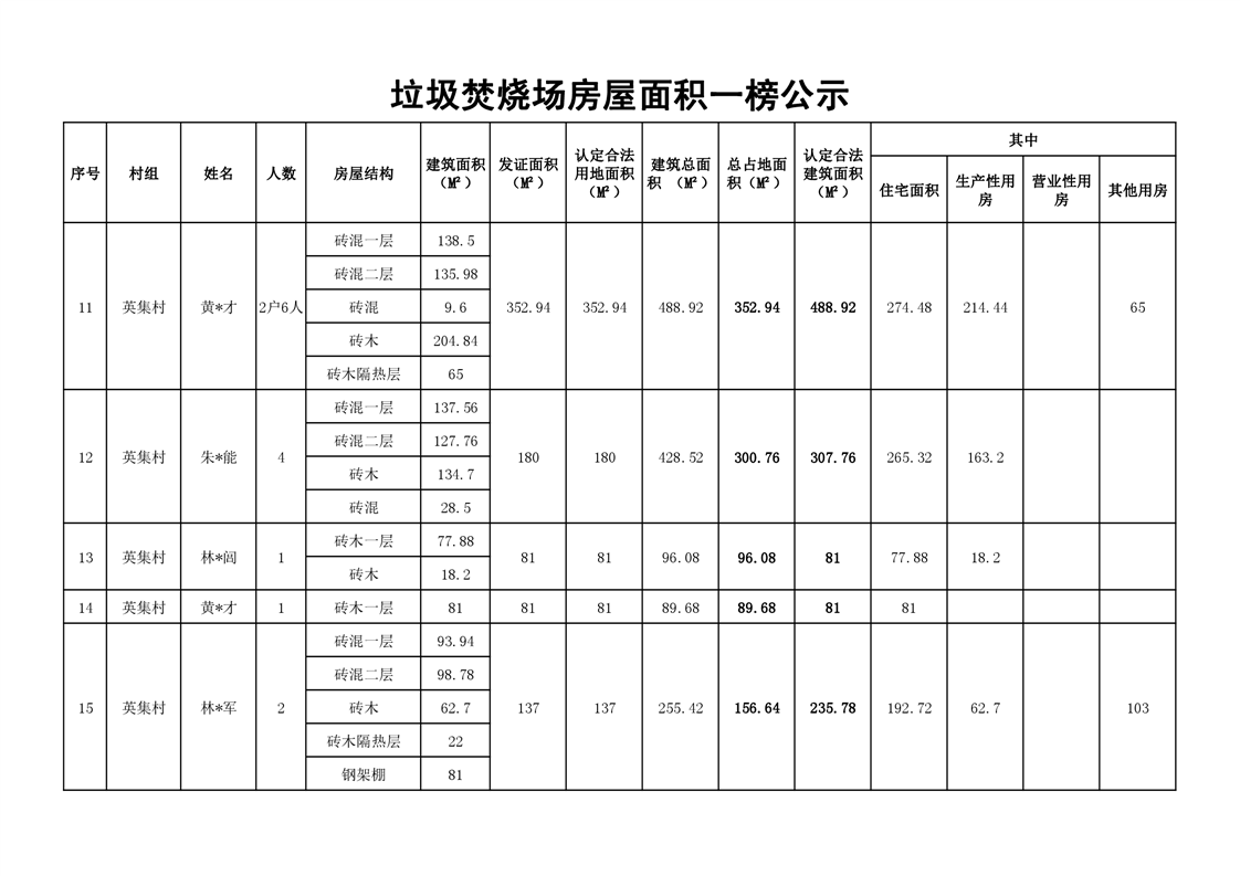 垃圾焚烧场房屋一榜公示英集村