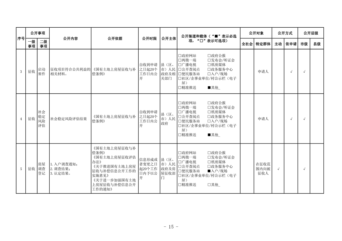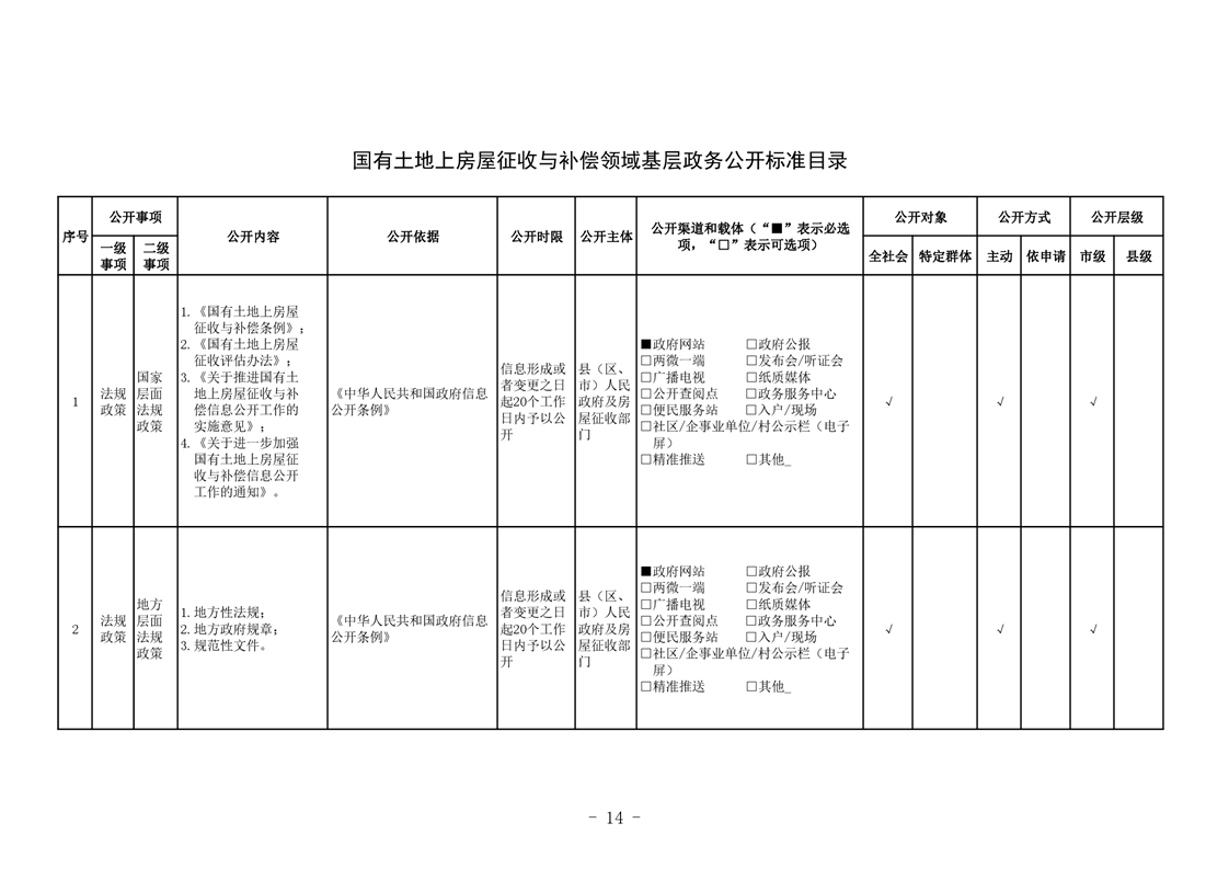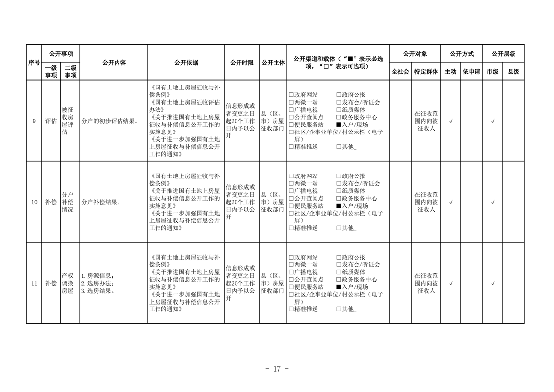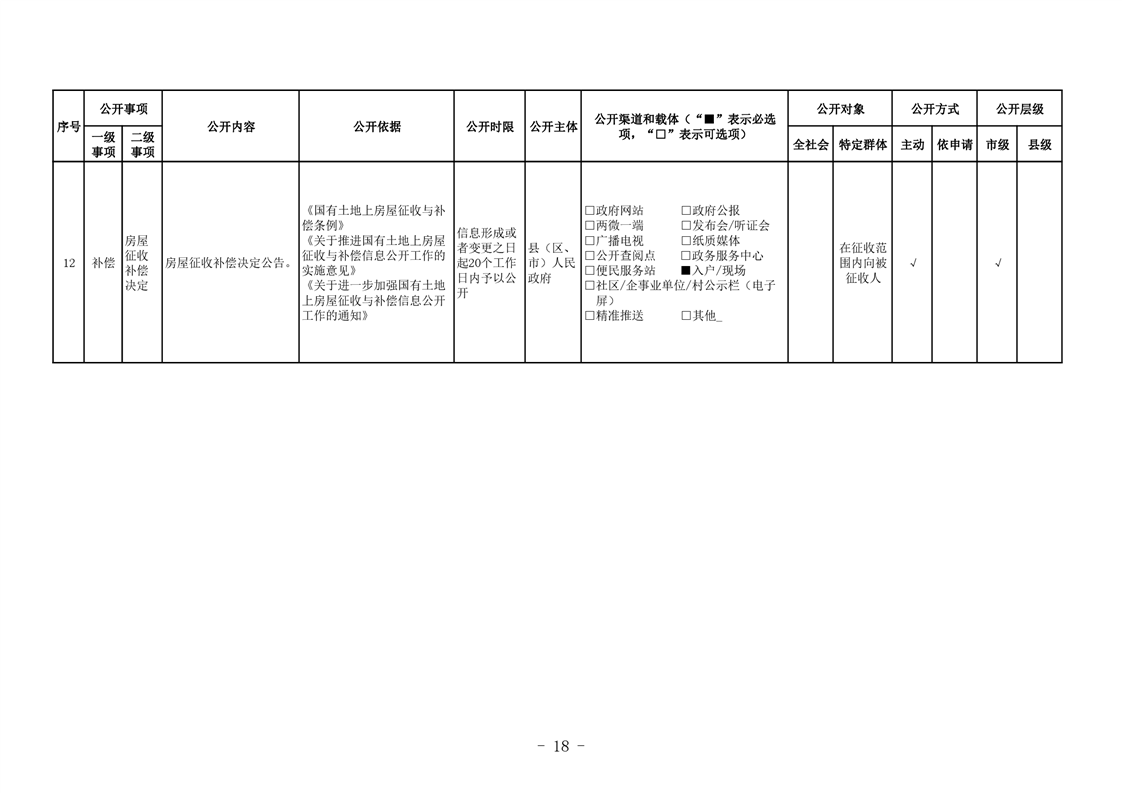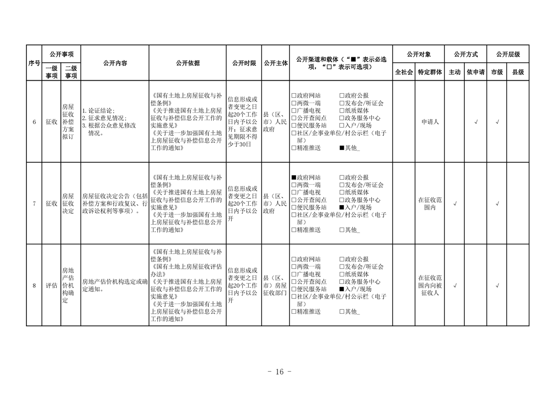 国有土地上房屋征收与补偿领域基层政务公开标准目录