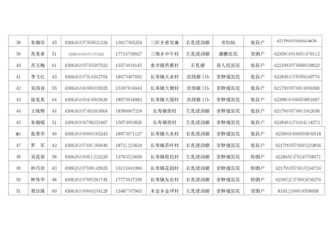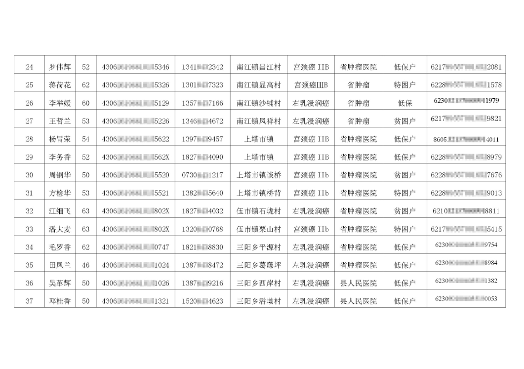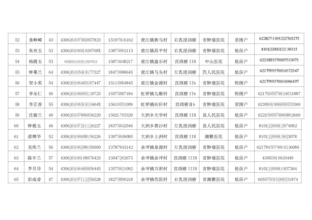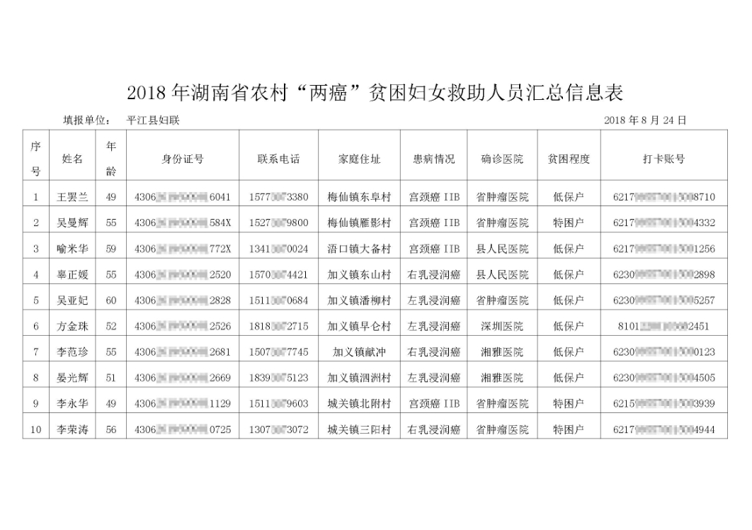 2018年湖南省农村“两癌”贫困妇女救助人员汇总信息表