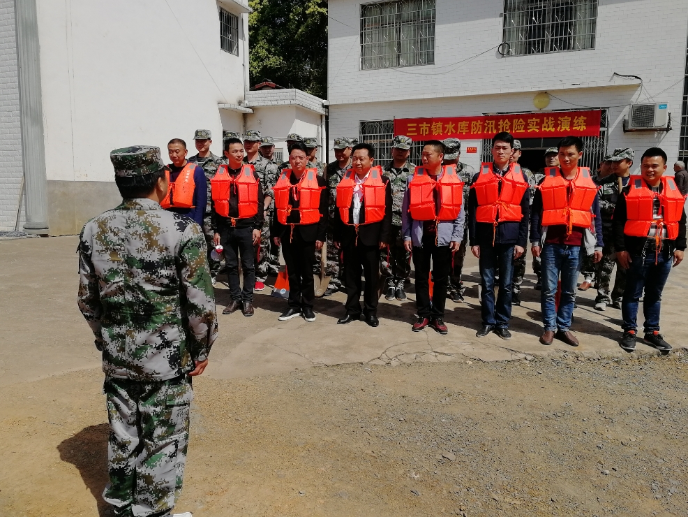 “三市镇防汛抢险及山洪灾害防御实战演练现在开始!”在永安村沈家垅水库下游居民区现场,随着镇防汛抗旱指挥部指挥长刘斌清一声令下,三市镇14座中小型水库下游村组和12处山洪灾害危险区(易发区)防汛演练全面开展。
