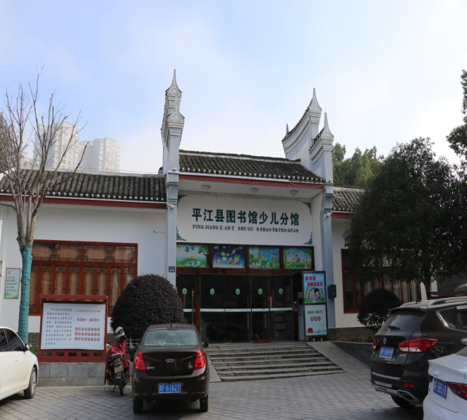 平江县平江起义旧址少儿图书分馆位于平江起义旧址,建筑面积130平方米,藏书20000册,于2018年开馆,2022年总流通人次150000。