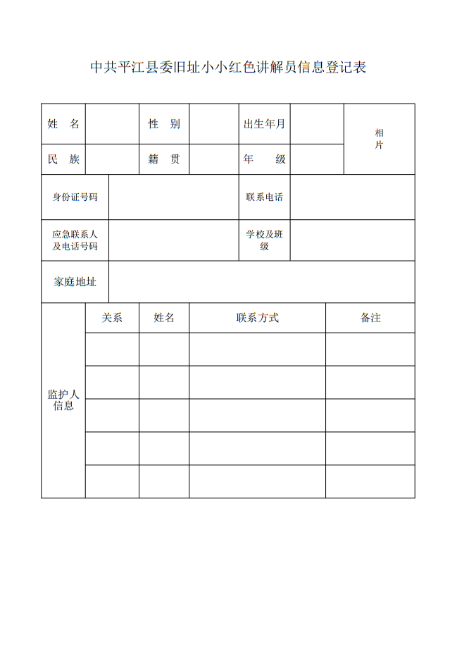 5.报名地点:中共平江县委旧址管理处办公室