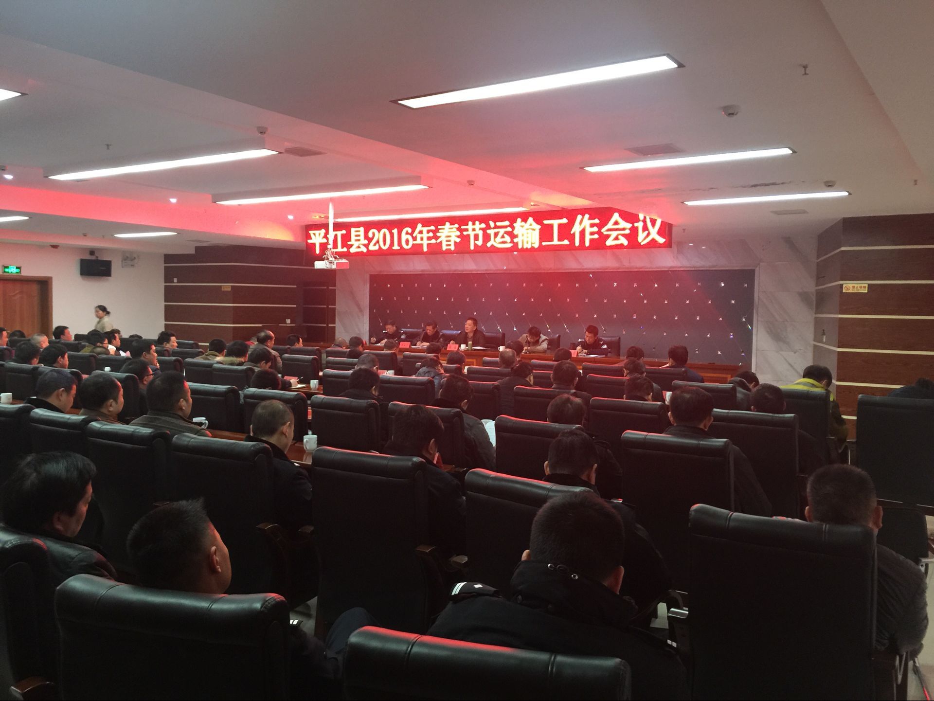 会议表彰通报了2015年春运工作10个先进单位以及25个先进个人。2016年春运从1月24日开始至3月3日结束,共计40天,由县交通运输局局长吴尚勇同志宣读《平江县2016年春运工作方案》,明确了各部门、乡镇的工作职责。会议强调,要按照“安全第一、保障有力、方便快捷、服务至上”的总要求,加强组织领导,科学调配运力,强化安全管理,提升服务质量,确保人流、车流集散有序,实现走得了、走得好、走得安全、走得满意的工作目标。