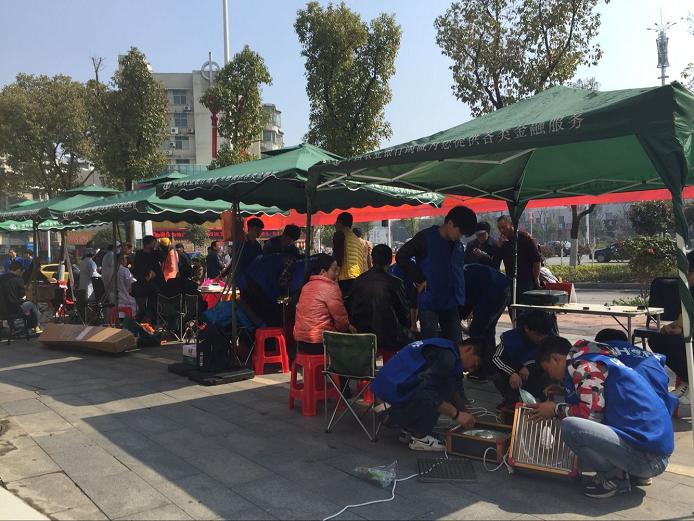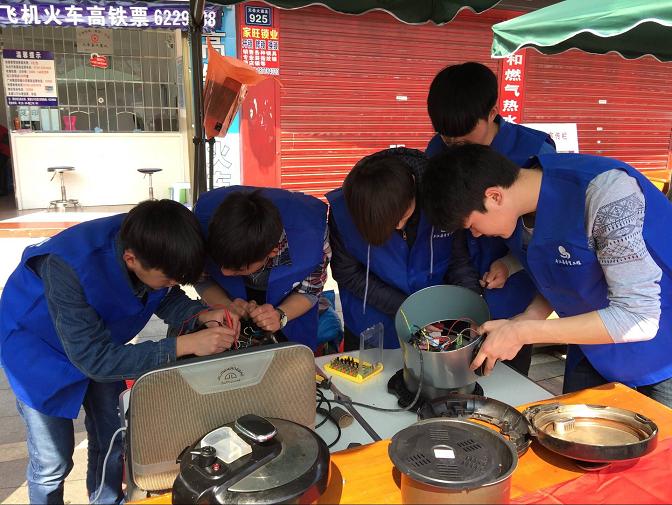 3月4日,春日融融,惠风和畅。一大早,平江县城关镇浮桥街社区的居民纷纷将家里损坏了的电炉、电饭煲、电视机等搬到社区便民服务点,原来是平江职校的志愿者到社区开展活动,为居民提供免费的家电维修服务来了。