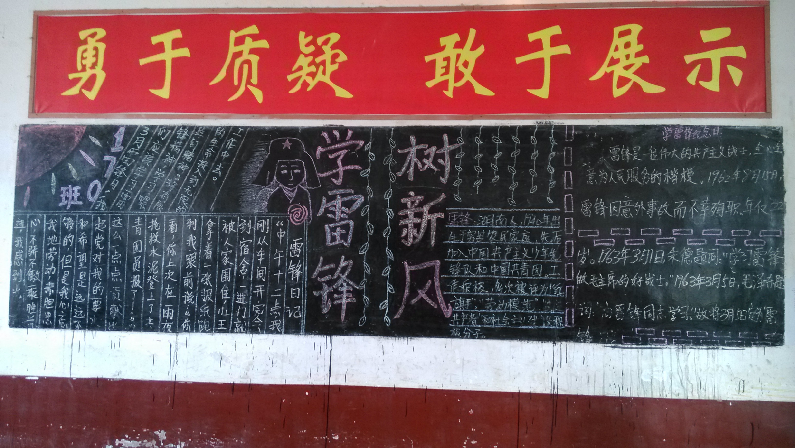 开学初,学校全体教师开展了捐助贫困学生的献爱心活动,资助了学校十五名学生。3月1日,学校政教处利用国旗下讲话,进行了“学雷锋,树新风,我行动”的动员,向全校师生发出了“向雷锋同志学习,做一个有道德的人”的倡议。从3月1日起,每天早晨起床、到放学铃声歌曲设置为学雷锋歌曲,学校各班课前五分钟均唱学雷锋歌曲。学校文化走廊张贴了“学习雷锋精神,构建爽意家园”的宣传专刊;各班办好了“学雷锋、树新风”黑板报专刊;学校广播站每天播报雷锋故事和校园里的学雷锋,树新风的好人好事。