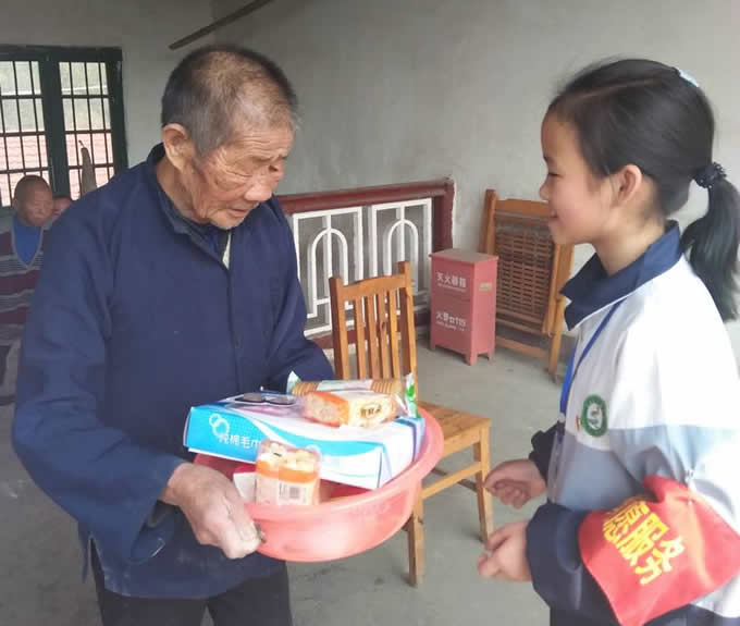 师生们一到敬老院,就立即拿起扫帚、抹布和拖把打扫卫生,向每位老人赠送牙膏、香皂、毛巾等生活用品。他们认真仔细地扫地、拖地、擦桌椅、倒垃圾,使老人们的生活环境更加整洁。他们还与老人们聊天,了解老人的家庭情况和在敬老院里的生活状况。副校长毛欣祥遇到了与他同一个村民小组的一位聋哑人,他当即掏出一百元送给了这们老人。