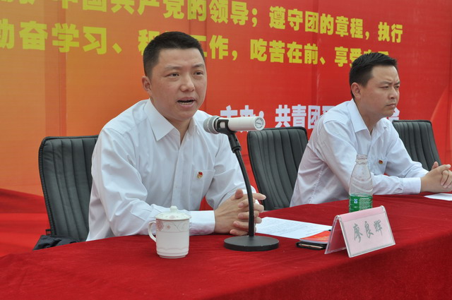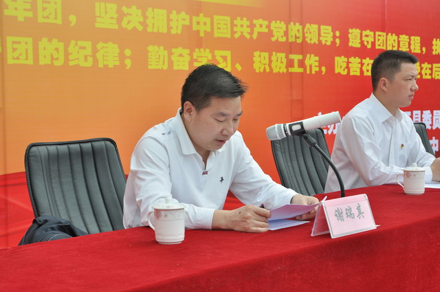 中共平江县委副书记谢瑞其讲话。希望团员青年们树立远大理想,强化责任意识,坚持发奋学习;做有抱负的青年、做有责任感的青年、做有作为的青年。