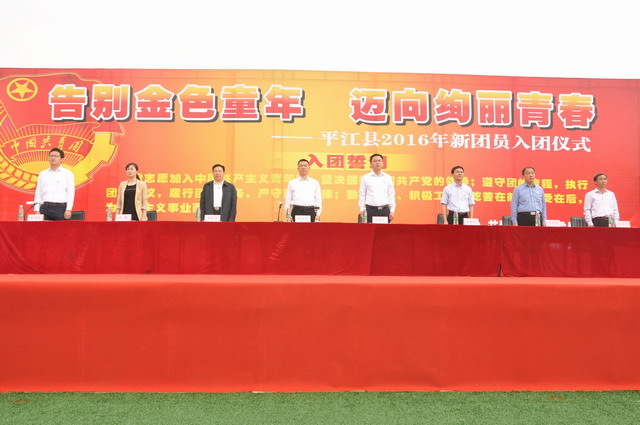 5月10日,平江县2016年新团员入团仪式示范活动在我县启明中学运动场举行。共青团湖南省委副书记廖良辉,共青团岳阳市委书记白再兴,中共平江县委副书记谢瑞其,平江县教体局副局长尹定章等出席仪式。仪式由共青团平江县委书记欧阳帆主持。
