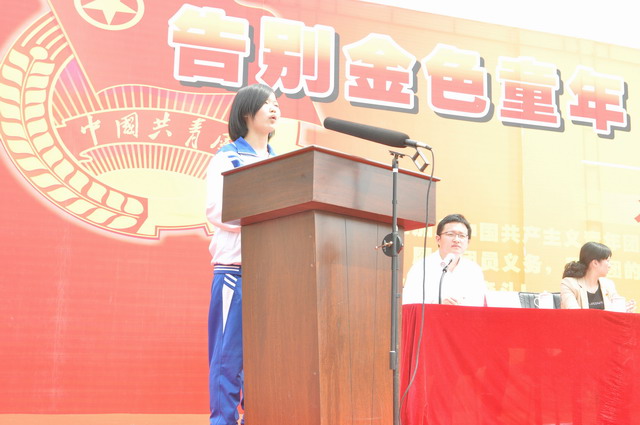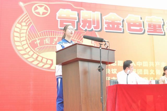新团员代表发言,表示要用实际行动维护团的尊严,保持团的活力;发挥团员的作用,展现团员的风貌;勿忘初心,不停脚步,实现梦想,做真正的共青团员!