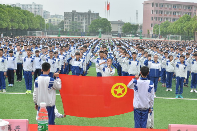 作为百年老校,平江县窗口学校,启明中学始终将立德树人放在首位,秉承“教育报国”这一优良传统,团的工作、团员活动蓬勃开展。上午十时,仪式示范活动开始,启明中学初中部2500多名学生青年、部分教师在足球场整齐列队,精神抖擞。启明中学袁瑛老师宣读入团批复及新团员名单后,领导为新团员佩戴团徽,211名新团员右手握拳,举起过肩,向鲜艳的团旗庄严宣誓。