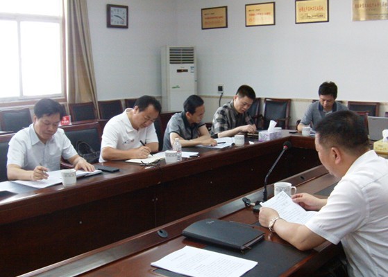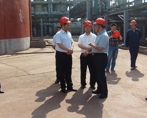 谢春生(左一)一行在伍市工业区听取工作汇报