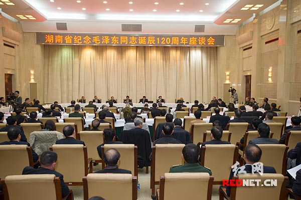 (12月24日下午,湖南省纪念毛泽东同志诞辰120周年座谈会在长沙举行。)