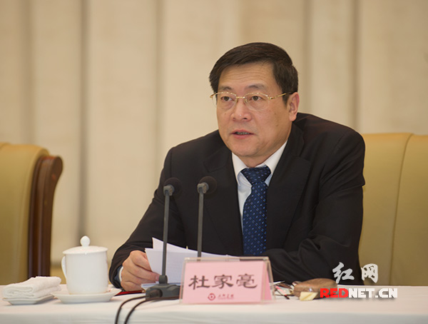 (湖南省委副书记、省长杜家毫主持座谈会。)