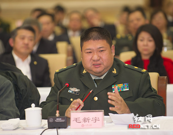 (毛泽东同志亲属代表、军事科学院军事战略部副部长毛新宇在座谈会上发言。)
