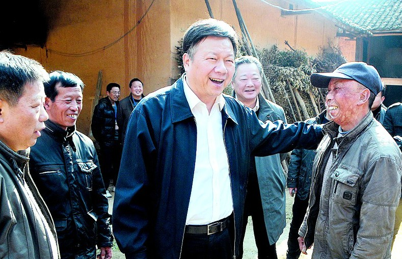 卿渐伟一行察看通村公路、饮水工程、通讯设施等扶贫建设项目的实施效果。2013年5月20日的现场办公会后