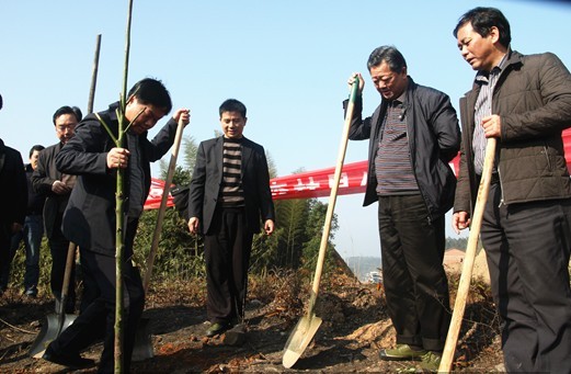 县委书记田自力(右2)县长谢春生(右4)参加植树活动。