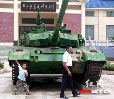 值建国60周年来临之际,陆军第三十八集团军为表示对在平江起义中英勇牺牲的革命烈士们崇高的敬意,特向该县捐赠了这辆按照1:1比例,复制的中国99式摸拟坦克。这辆模似坦克将永久停放在史料陈列馆内,向游客免费展示,从而使更多的人了解军事常识,接受爱国主义教育。