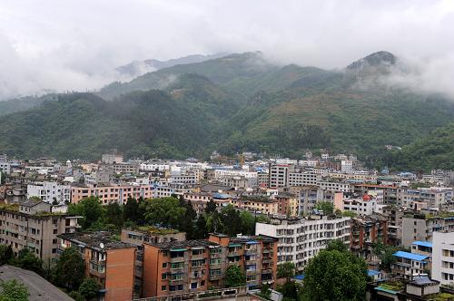 这是5月9日拍摄的青川县城乔庄镇概貌。四川省青川县位于四川盆地北部边缘,川、甘、陕三省交界处,地处龙门山构造带。汶川大地震中,该县受灾严重。 5月7日,四川省民政厅厅长黄明全在“5·12”抗震救灾周年新闻发布会上说,经过专家实地考察和充分论证,综合多方面的因素,有关方面确定青川县城党政机关驻地不再搬迁,保留县城所在乔庄镇的基本功能,加大对竹园镇的建设力度。青川县城的一些单位将适度分流到竹园镇。 新华社记者 李紫恒 摄