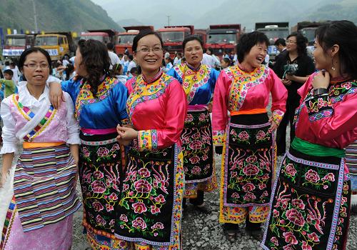 5月9日,在新校舍奠基仪式上,映秀小学的女教师们露出笑脸。当日,四川省汶川县映秀镇映秀小学举行新校舍奠基仪式。这座小学在地震中校舍彻底倒塌,孩子们在板房上课至今新校舍用地10446平方米,可容纳12个班。 新华社发