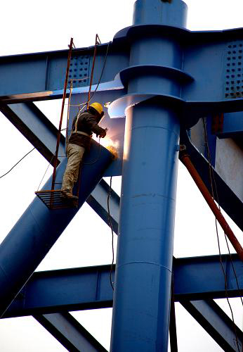 3月3日,工人在广能蓥峰水泥厂新型干法水泥技改项目建设工地焊接窑尾预热塔。汶川大地震灾后重建重点扶持建设项目广能蓥峰水泥厂新型干法水泥技改项目一期工程,于2008年9月上旬正式开工建设以来,目前已顺利完成工程总量的68%,力争今年6月底前提前投产,为地震灾区重建提供优质的建筑原材料保障。广能蓥峰水泥厂新型干法水泥技改项目一期工程总投资5.877亿元,设计能力日产4000吨熟料水泥。新华社发(邱海鹰 摄)