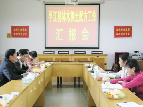 万均农代表县政府向文振军总工程师一行就我县当前林木测土配方信息系统基础数据核查工作进展情况作了详细汇报,余燕辉在会上表示,平江作为全省重点林区县,必须抢抓机遇,群策群力,精密策划,扎实工作,确保工作顺利开展,圆满完成任务。