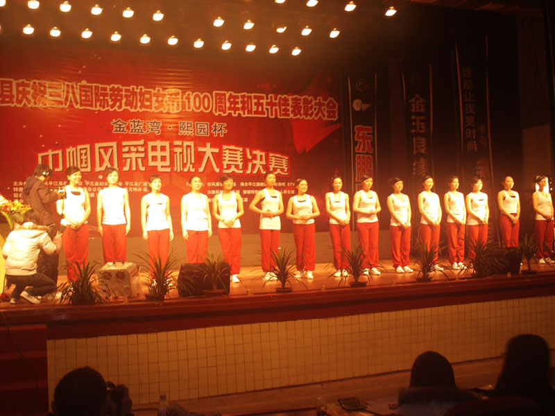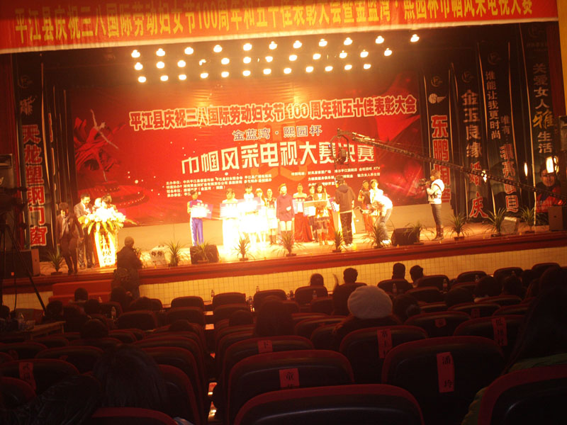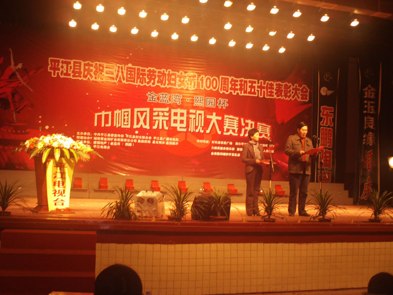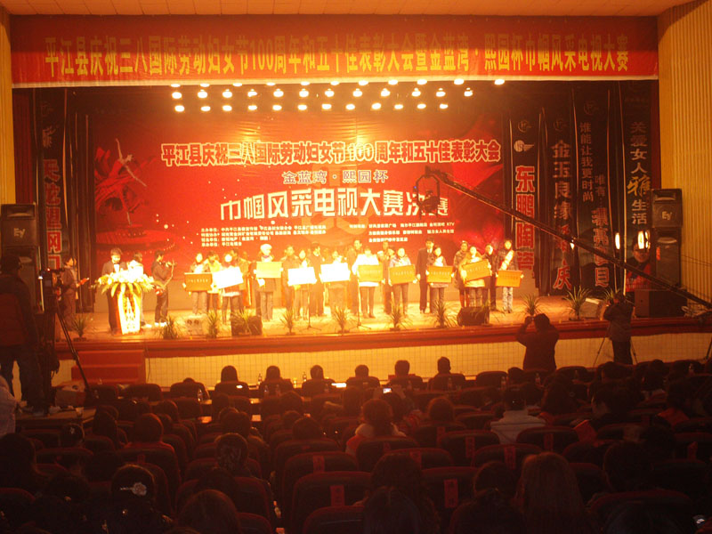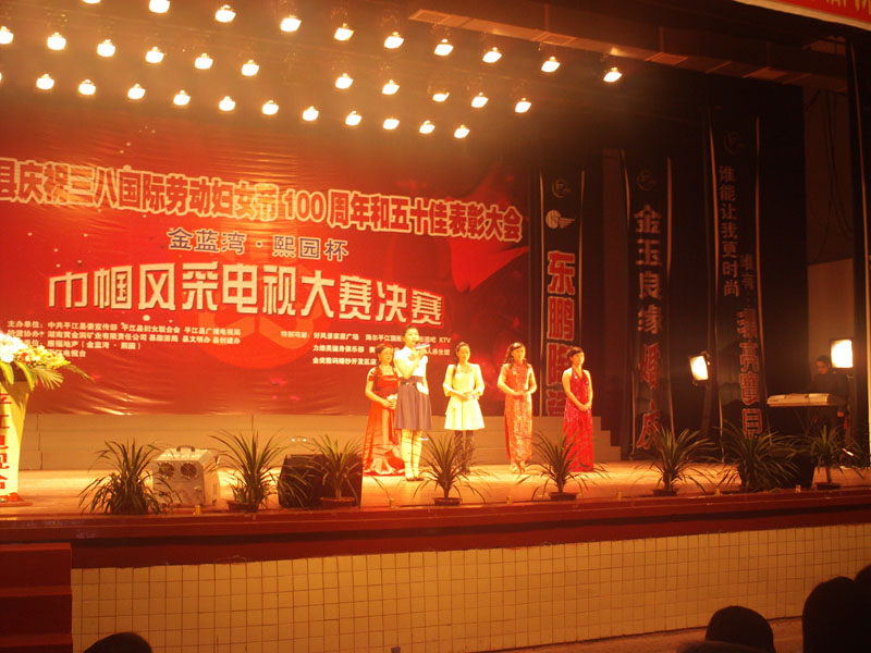 随后,由县委宣传部、县妇联、县广播电视局联合举办,平江电视台承办的平江县庆祝三八国际妇女节100周年暨金蓝湾、熙园杯巾帼风采大赛决赛拉开帷幕。