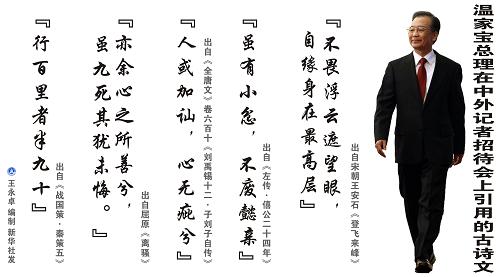 图表:温家宝总理在中外记者招待会上引用的古诗文 新华社发