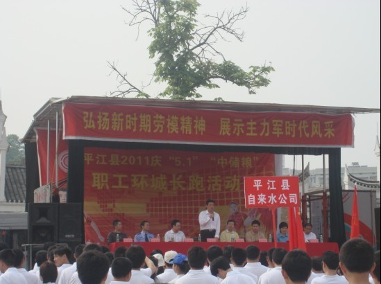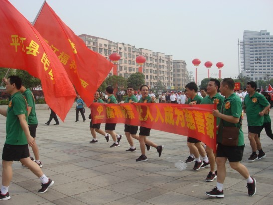 4月29日上午8点整,由县委宣传部、总工会、体育局联合组织的庆“五一”职工环城长跑活动在彭德怀铜像广场启动,全县各条战线的县直单位均组队参加。活动现场彩旗飘舞,气氛热烈,各代表队统一着装色彩缤纷,意气风发。这是我县继全县广场舞大赛之后,为推广全民健身运动组织的又一重大活动。