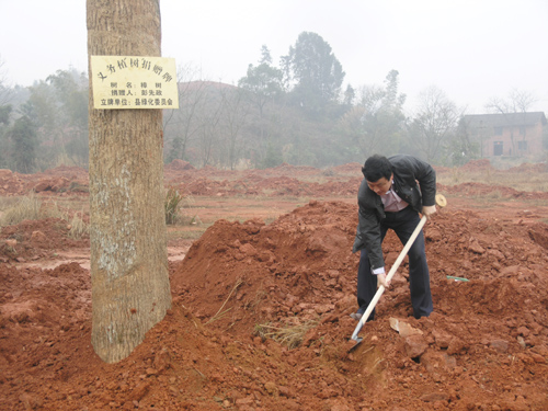 一大早,新烈士陵园已是人头攒动,一派热火朝天的场面。大家争先恐后地抄起铁锹、锄头,扶苗培土、铲土填坑、踏实土层。在植树队伍中,有两个熟悉的身影——县委书记彭先政、县长王洪斌,他们挥动铁锹,认真栽种着树苗,并不时与周围干部交流植树的心得。经过一上午大家的辛勤劳动,共栽植各类树苗7000多棵,完成绿化面积80多亩。