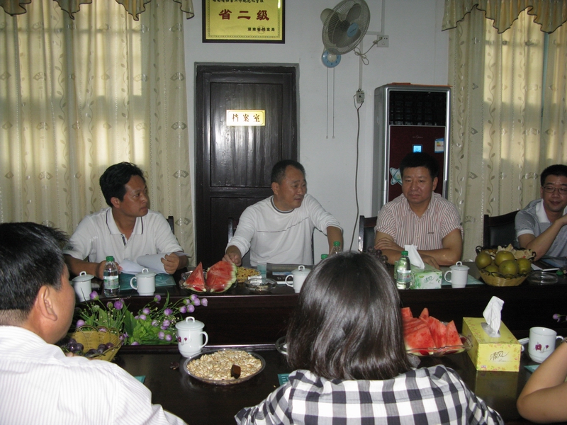 县委副书记、县长王洪斌,县委常委、县委办主任李镇江在考察意见流流会上与龚曙光董事长一行交换意见。