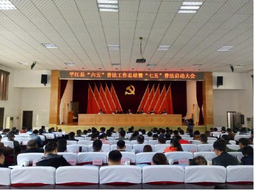 2017年2月27日,平江县召开全县“六五”普法依法治理工作总结暨“七五”普法依法治理工作启动大会,总结回顾了“六五”普法的成绩,启动部署“七五”普法工作。县委副书记肖湘辉,县委常委、县政法委书记周虎光,县委常委、县委宣传部长熊江新,县人大副主任吴姣姣,县政府副县长姜伟南,县政协副主席周晓晖等领导出席会议。全县各乡镇党委副书记、分管政法负责人、综治办主任和司法所长,县直部门和省、市驻平单位主管法治宣传教育的负责人参加了会议。
