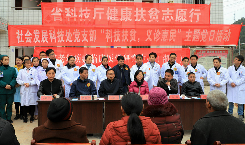 3月20日,省科技厅组织湘雅医院和县第一人民医院的医疗专家来到瓮江镇洪山村开展健康扶贫活动,为当地群众开展免费义诊。省科技厅副巡视员刘铁兵,县委常委、常务副县长陈淼,湘雅医院副院长唐北沙和县科工局主要负责人参加。