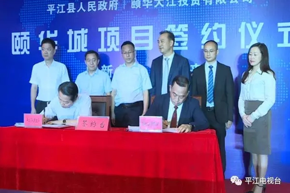 6月27日,平江县人民政府与颐华大江投资有限公司举行平江颐华城项目签约仪式,县委副书记、县长黄伟雄与颐华大江投资有限公司董事长曾泰悟分别代表合作双方签约。县领导黎耀辉、洪志凡、陈淼、刘裕凡、潘如意、姜伟南、魏移宗、田浩、汪洋、梁金华、陶海音、谢淼泉等出席签约仪式。