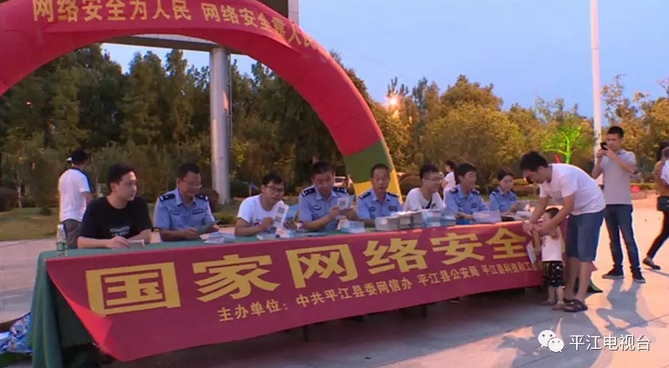 9月20日晚,平江县委网信办、县科工信局、县公安局在天岳广场开展了主题为“网络安全为人民,网络安全靠人民”国家网络安全宣传周活动。
