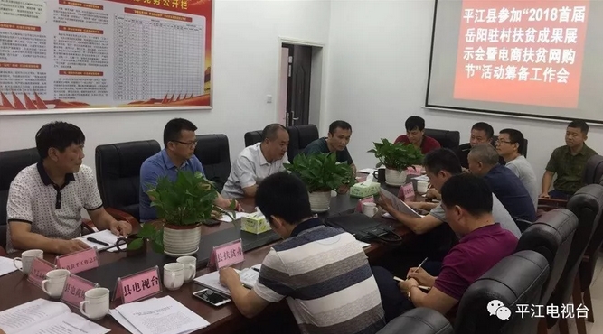 为深入助推全市脱贫攻坚目标任务圆满顺利实现,展示驻村帮扶成果,市委组织部牵头开展2018首屆岳阳驻村扶贫成果展示会暨电商扶贫网购节”活动,计划通过线上线下活动推广销售贫困村农特产品。我县作为全市脱贫攻坚主战场,是这次活动的重点推介县。筹备会上,与会人员就农特产品收集、组织参展等事宜进行了会商。