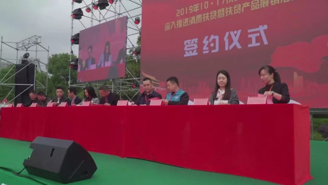 启动仪式上,市委副秘书长黄岳山宣读了《岳阳市消费扶贫倡议书》。湖南创领电子商务公共服务有限公司与岳阳商务局签订了《岳阳市推进电商扶贫小店精准产销对接合作协议》;秀庐集团与平江县签订了《平江县百名村播网红培训协议》;品骏快递集团与平江县签订了战略合作协议,将从电商扶贫小店扶持、村播网红培训、电商物流建设等方面为岳阳市及我县深入推进消费扶贫加马力、添动力。