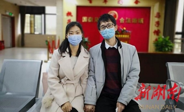 “1、2、3,OK!”在二楼婚姻登记专区,该县十中教师周岳、何巧梅照完结婚照,捧着结婚证正接受着工作人员的祝福。从取号预约、免费婚优检到领取结婚证书,整个流程仅用半个多小时。