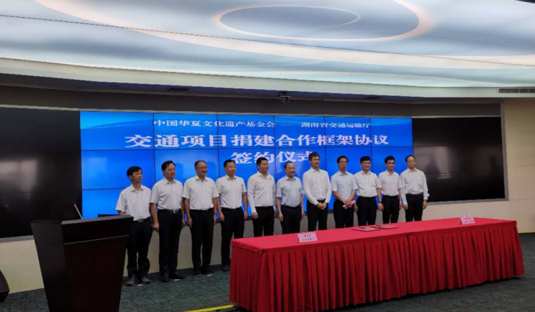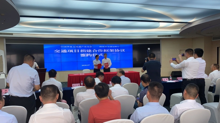 7月31日,省交通运输厅与中国华夏文化遗产基金会交通项目捐建合作框架协议签约仪式在长沙举行。省交通运输厅、华夏基金会和相关市县主要领导,副县长艾志军、县交通运输局局长吴尚勇参加签约仪式。