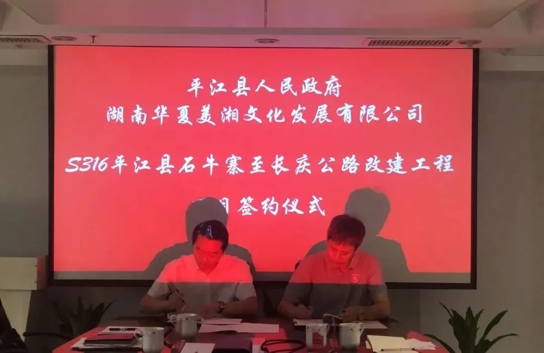 9月2日,中国华夏文化遗产基金会副理事长、湖南美湘文化发展有限公司总经理高峰与县委副书记、县长黄伟雄正式签订了S316石牛寨至长庆公路改建工程实施合作协议,这标志着S316石牛寨至长庆公路改建工程离开工之日更近了一步。县委副书记邢朝虹、副县长艾志军,中国华夏文化遗产基金会公募基金部长、湖南美湘文化发展有限公司副总经理万家春出席仪式。