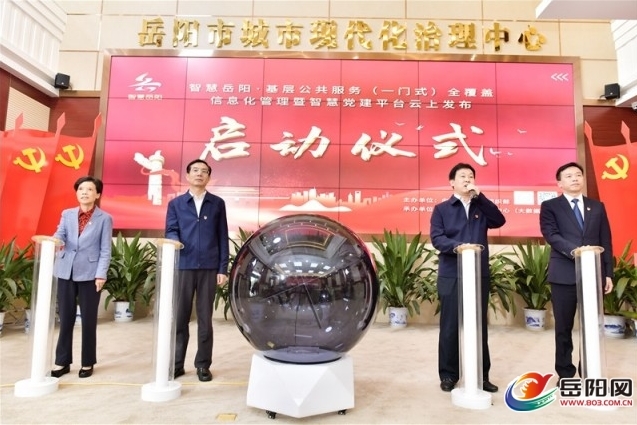 10月28日,智慧岳阳·基层公共服务(一门式)全覆盖信息化管理暨智慧党建平台云上发布启动仪式,在市城市现代化治理中心举行。市委常委、常务副市长李挚宣布平台正式上线运行,市委常委、组织部长王武出席启动仪式并讲话。市委基层公共服务(一门式)全覆盖领导小组成员单位负责同志等在主会场参加启动仪式,各县市区、乡镇(街道)、村(社区)的42万名党员群众通过云视讯视频连线的方式在线参与。