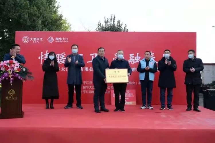 1月13日,颐华大江投资有限公司携手“大爱平江”向我县环卫工人捐赠价值30万元的冲锋棉衣,在寒冬里捎去了春风拂面的浓浓暖意。县委常委、宣传部长熊江新,颐华大江投资有限公司董事长曾泰悟,“大爱平江”扶贫助困慈善协会(基金会)会长陈松柏出席捐赠活动。