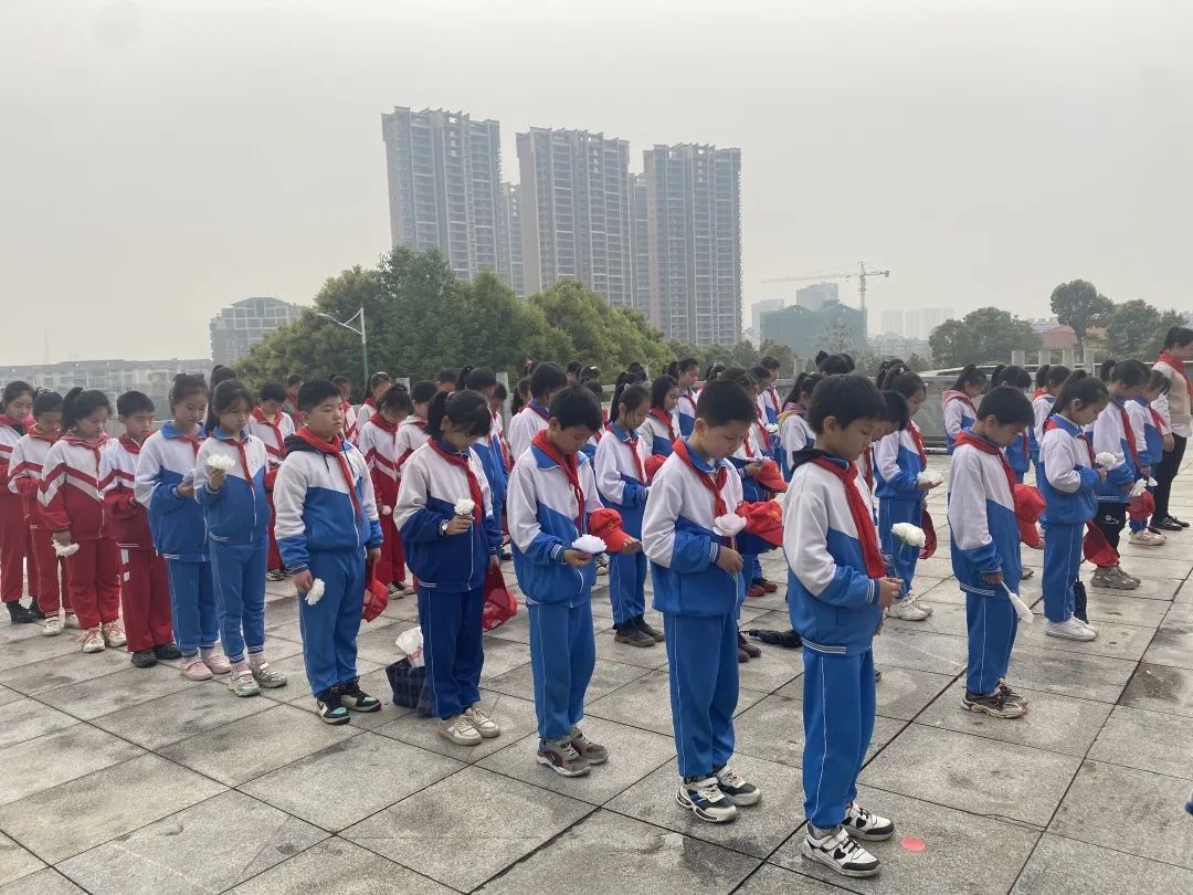 同日上午,一群穿着整齐校服的小学生们,手持着形状不一的小白花,走进了平江烈士陵园。纯白的小纸花,或点缀些许嫩黄,或涂上浅浅墨黑,或大得能遮住整个小手,或小至手掌心就能托住,童真的他们,用自己的方式向烈士们表达敬意。“我们能做的就是刻苦学习,将来用自己的知识来把祖国建设得更加富强繁荣,告慰先烈们。”启明中学小学部五年级的唐思雅在学生代表发言时讲道。