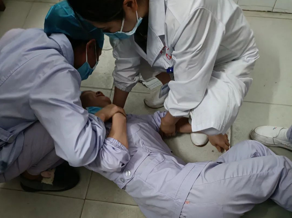 晚上六点多,她开始出现不适,同事回忆道:当时大家都在清点盘仓,突然只听到“哐”的一声,寻声望去,李欣欣已经晕倒在地,怎么也叫不醒。现场医务人员赶紧把李欣欣抬到留观处置区的病床上抢救,并通知120将她转至急诊科,经过紧急治疗才恢复意识。